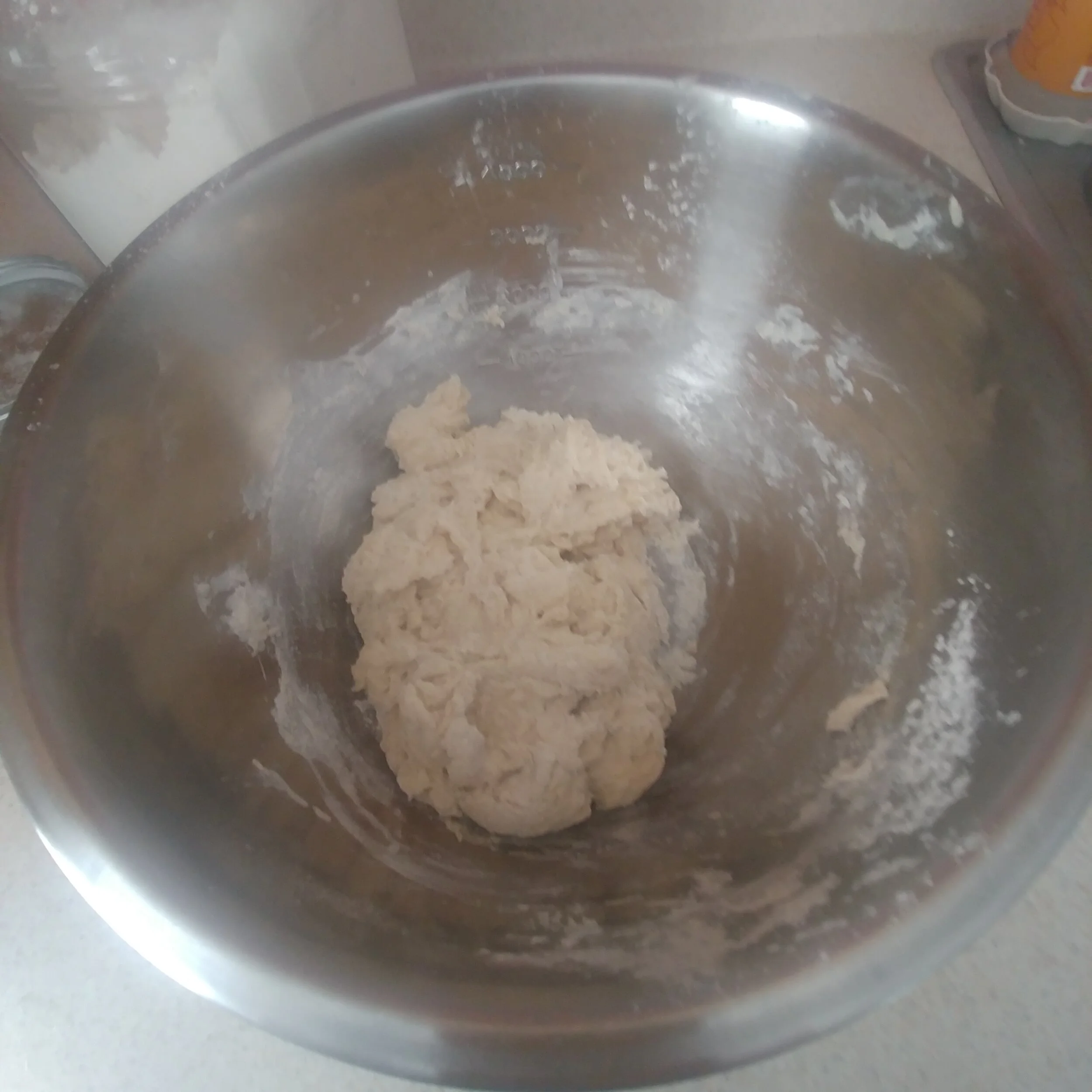 3. Transfer the dough to a lightly floured surface, and start kneading it. This process helps build up the gluten, creating a protein structure to capture the air bubbles released by the yeast. Kneading is essentially stretching and folding the dough over itself repeatedly. Follow the images below for a step-by-step guide on how to knead.