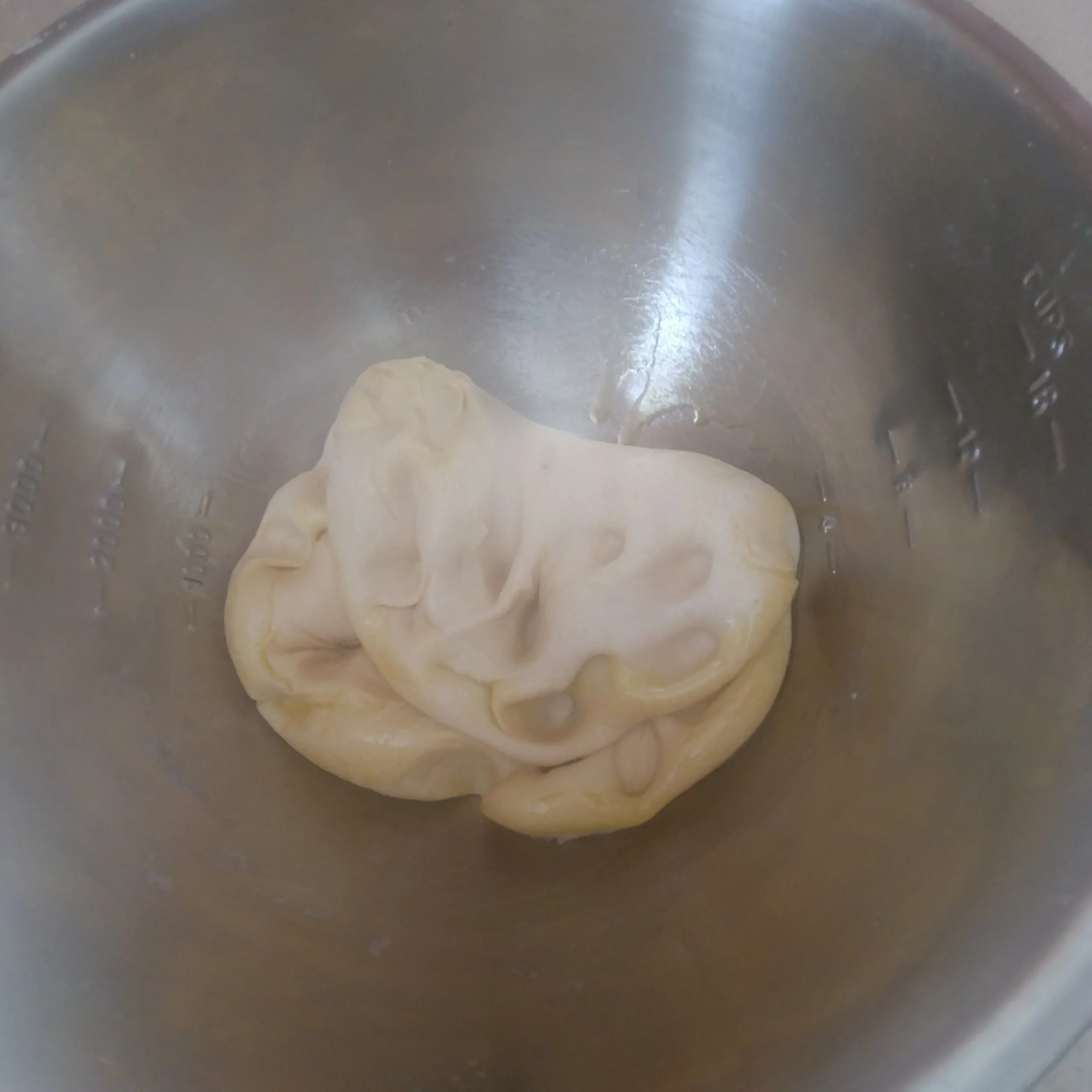 If you’ve kneaded your dough enough, you can stretch it thin enough that if you hold it up to a light, the light comes through. If you look closely, you can see the protein structures.