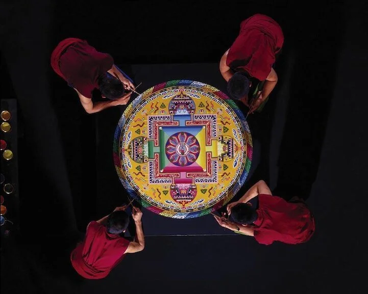 Buddhist monks creating a sand mandala (image via mymodernmet.com)
