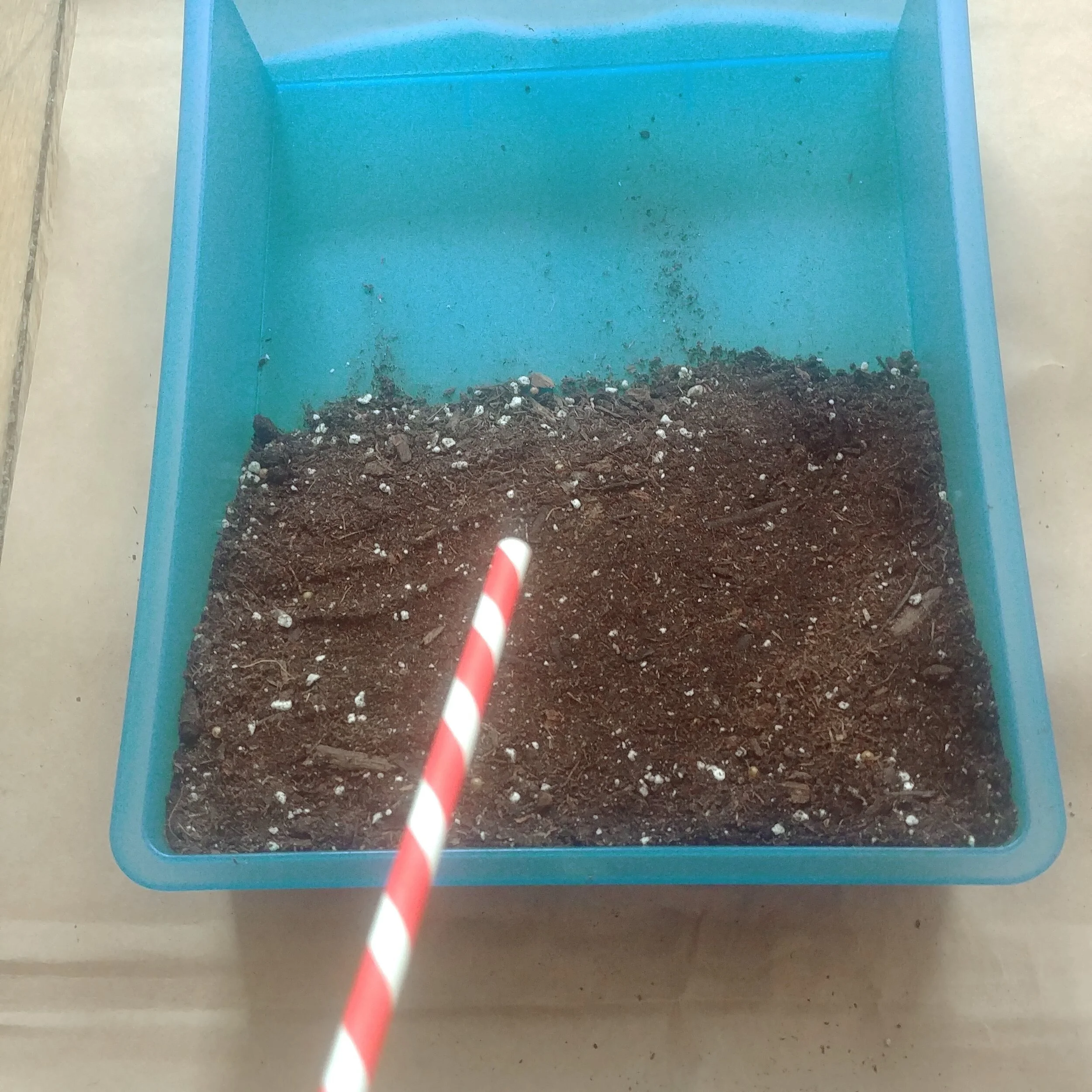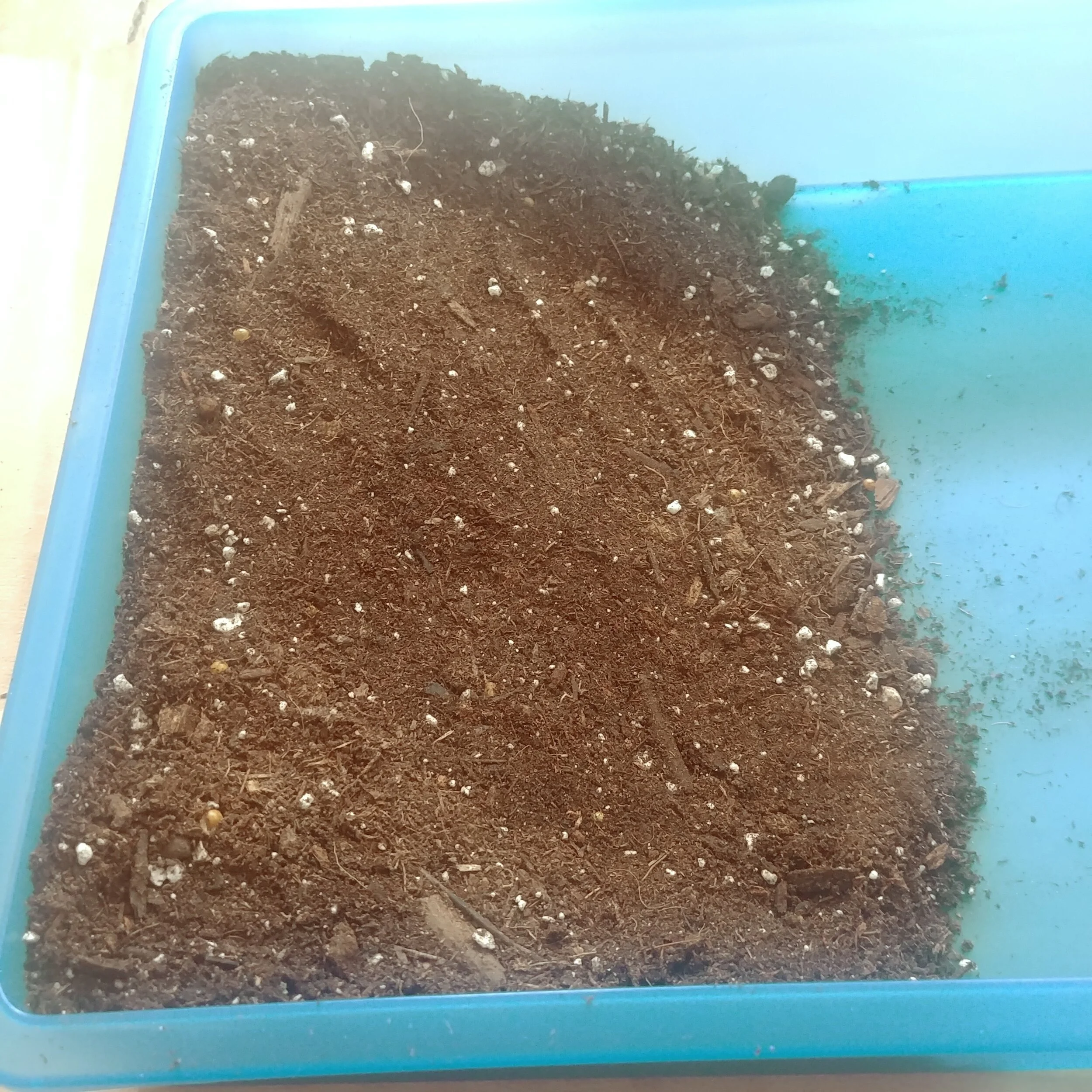 1. Pour your soil into the plastic bin, and build a slope of soil on one side of the bin.