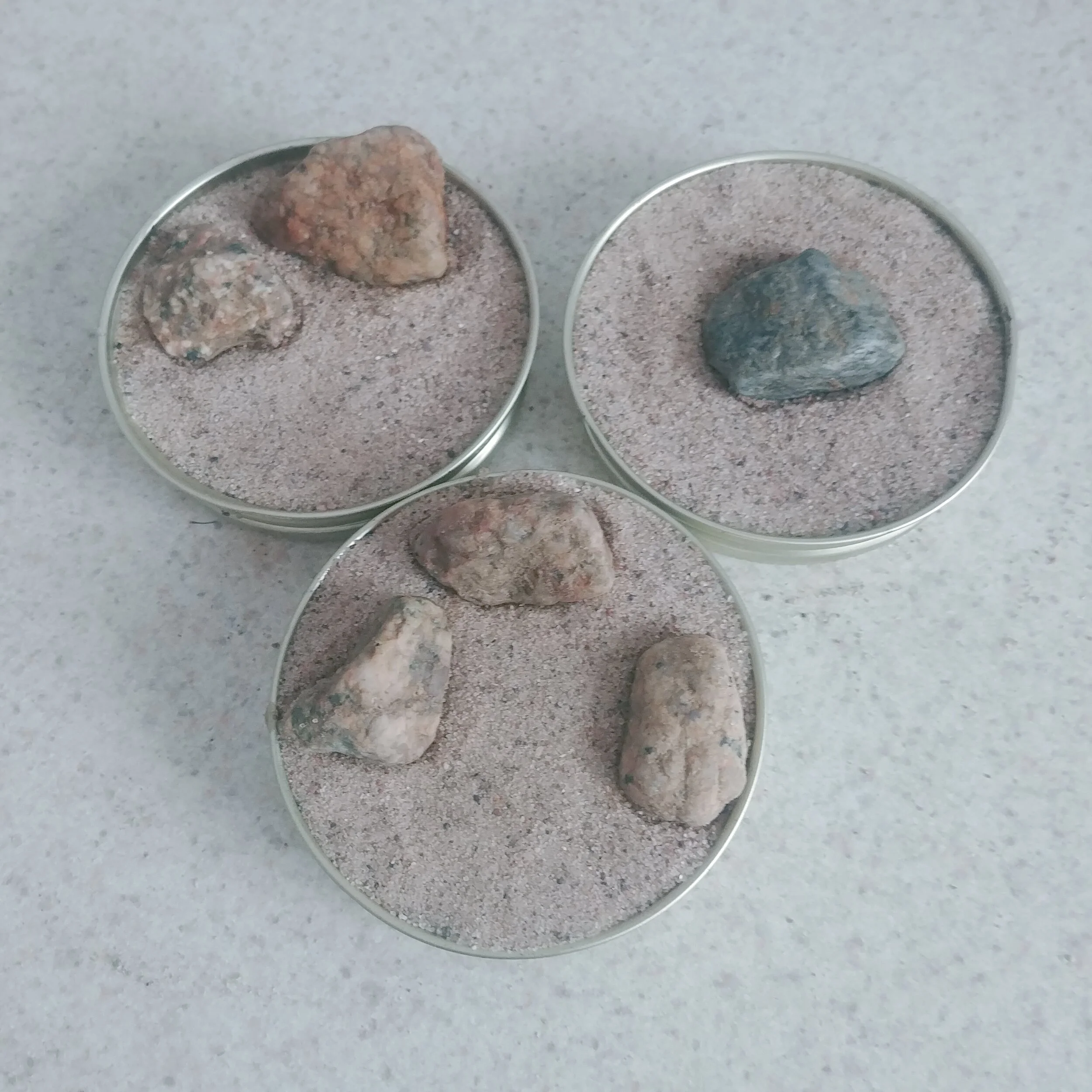 1. Fill your shallow dish with sand all the way to the lip of the dish, smoothing and slightly tamping down the sand.