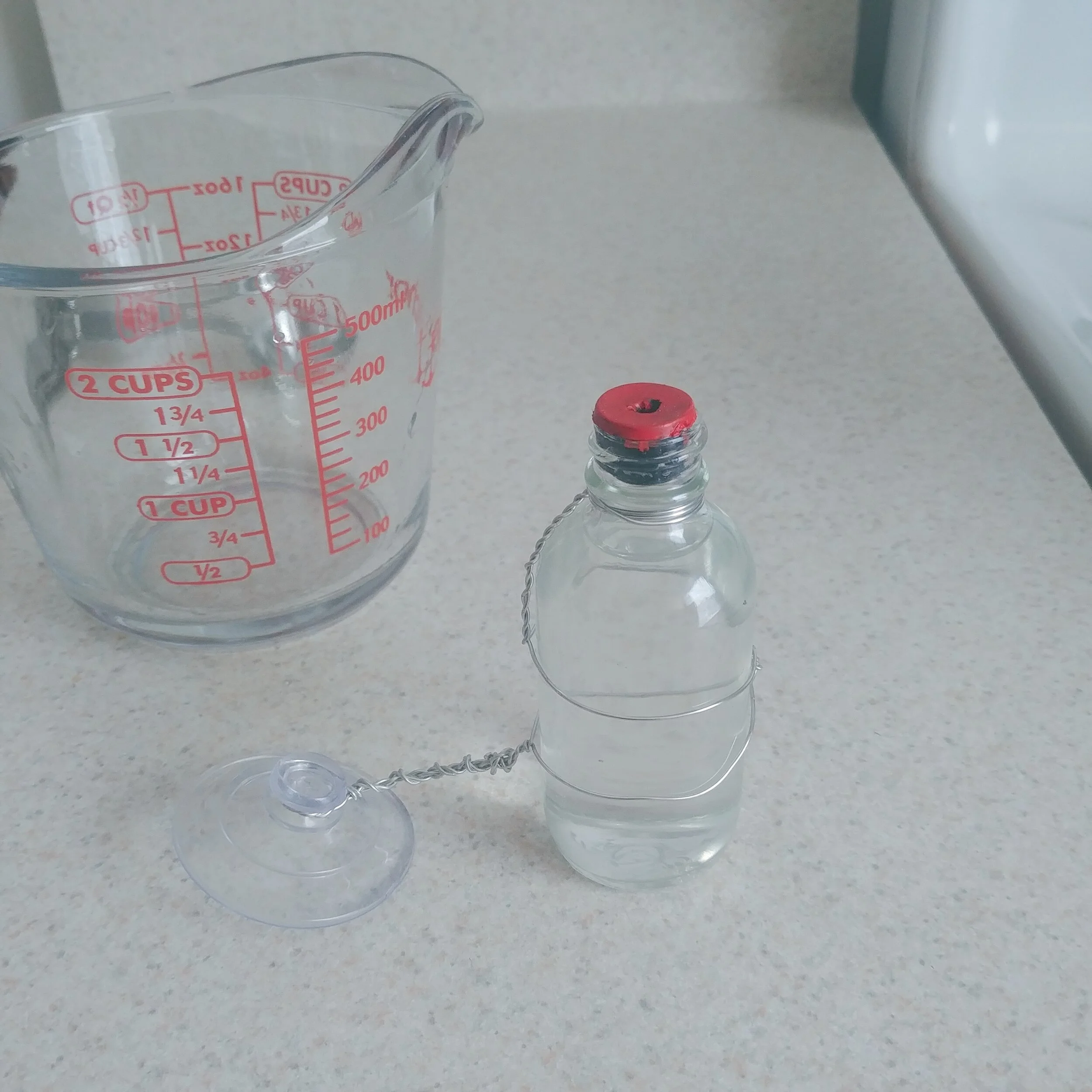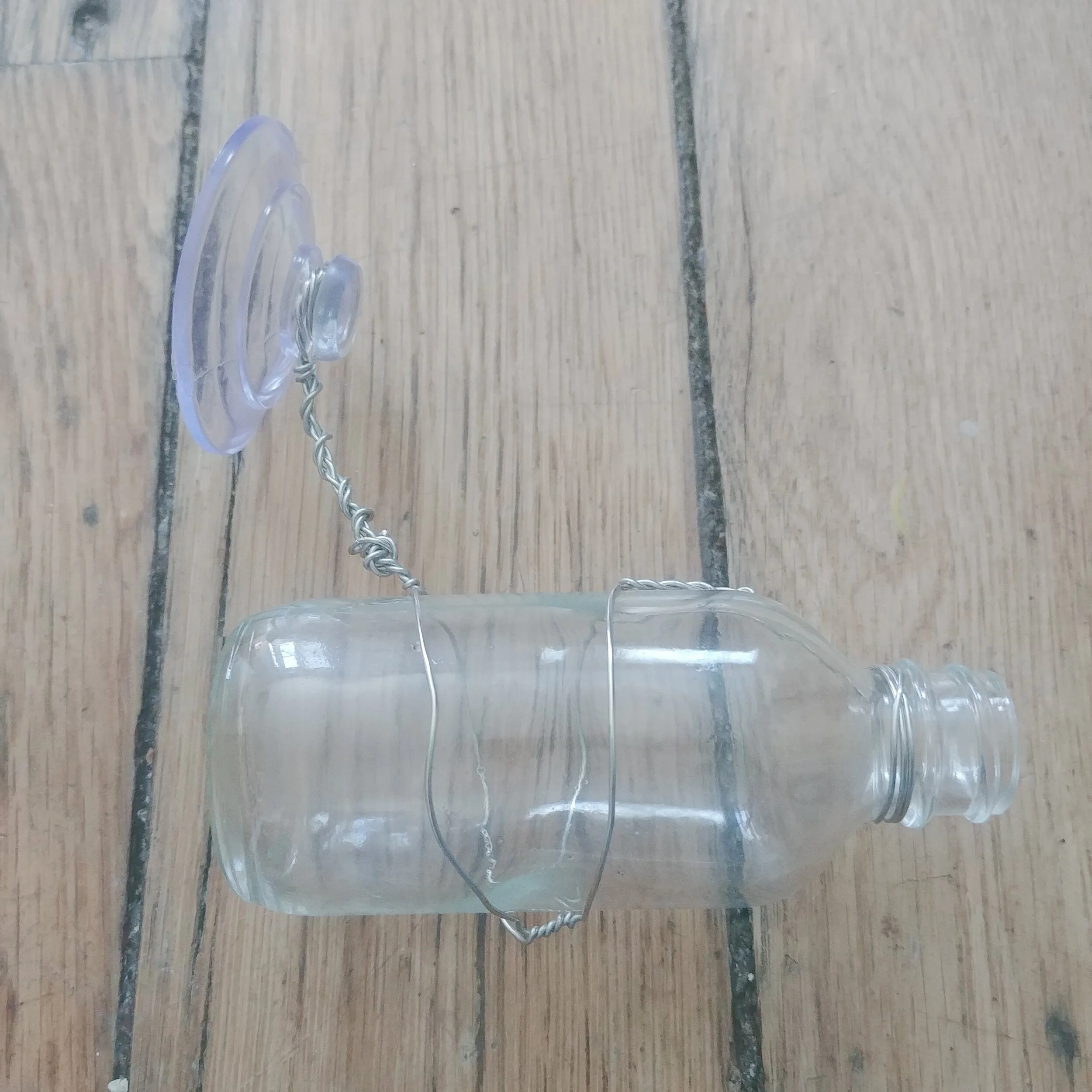 2. Wrap one end of the wire around the container, providing enough support to hold it. Wrap the other end around a suction cup so you’ll be able to hang the feeder on a window.