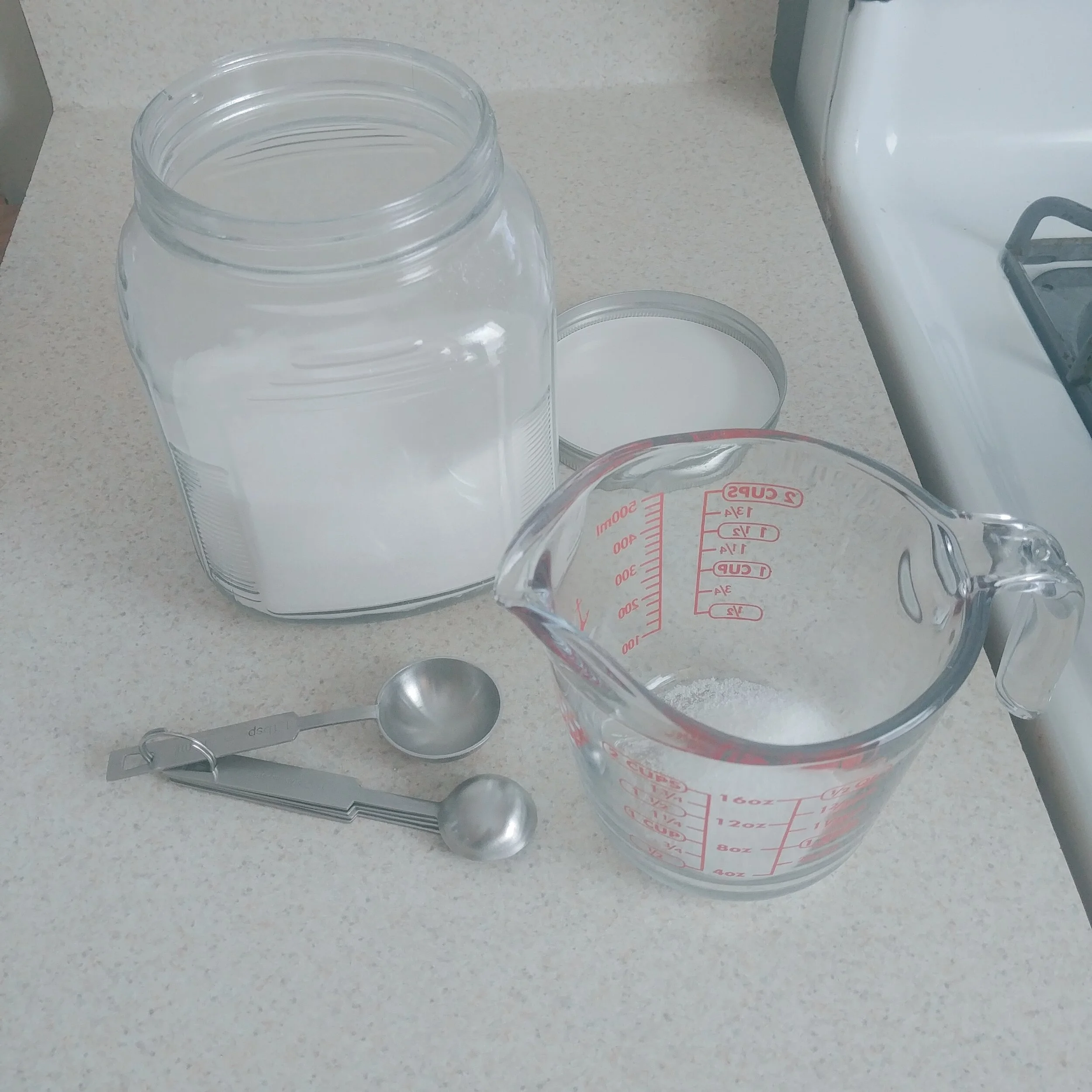 4. Put the amount of sugar you’re using in the measuring cup. Once the water is boiling, add that to the measuring cup. Allow the sugar to dissolve, and then let the sugar water cool to room temperature.
