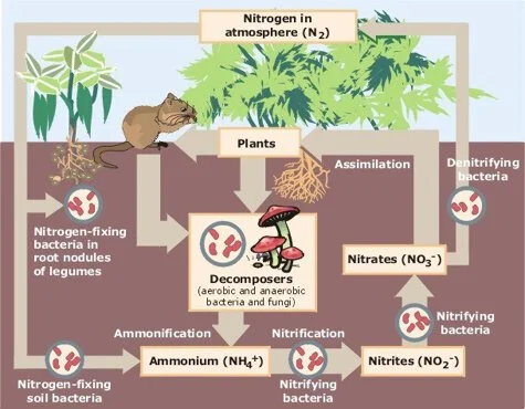 Ammonification: This is part of the decaying process. When the plant (or the animal that ate it) eventually dies, decomposers like fungi and bacteria in the soil turn the nitrogen back into ammonium