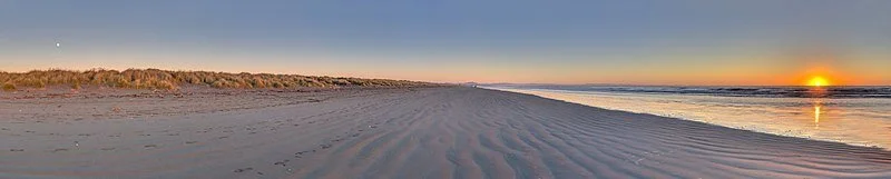 PANORAMA SHOWING BOTH THE SUN AND THE MOON AROUND THE JUNE SOLSTICE IN SOUTH NEW BRIGHTON'S BEACH, NEW ZEALAND (IMAGE CREDIT: WIKIMEDIA COMMONS/MICHAL KLAJBAN)