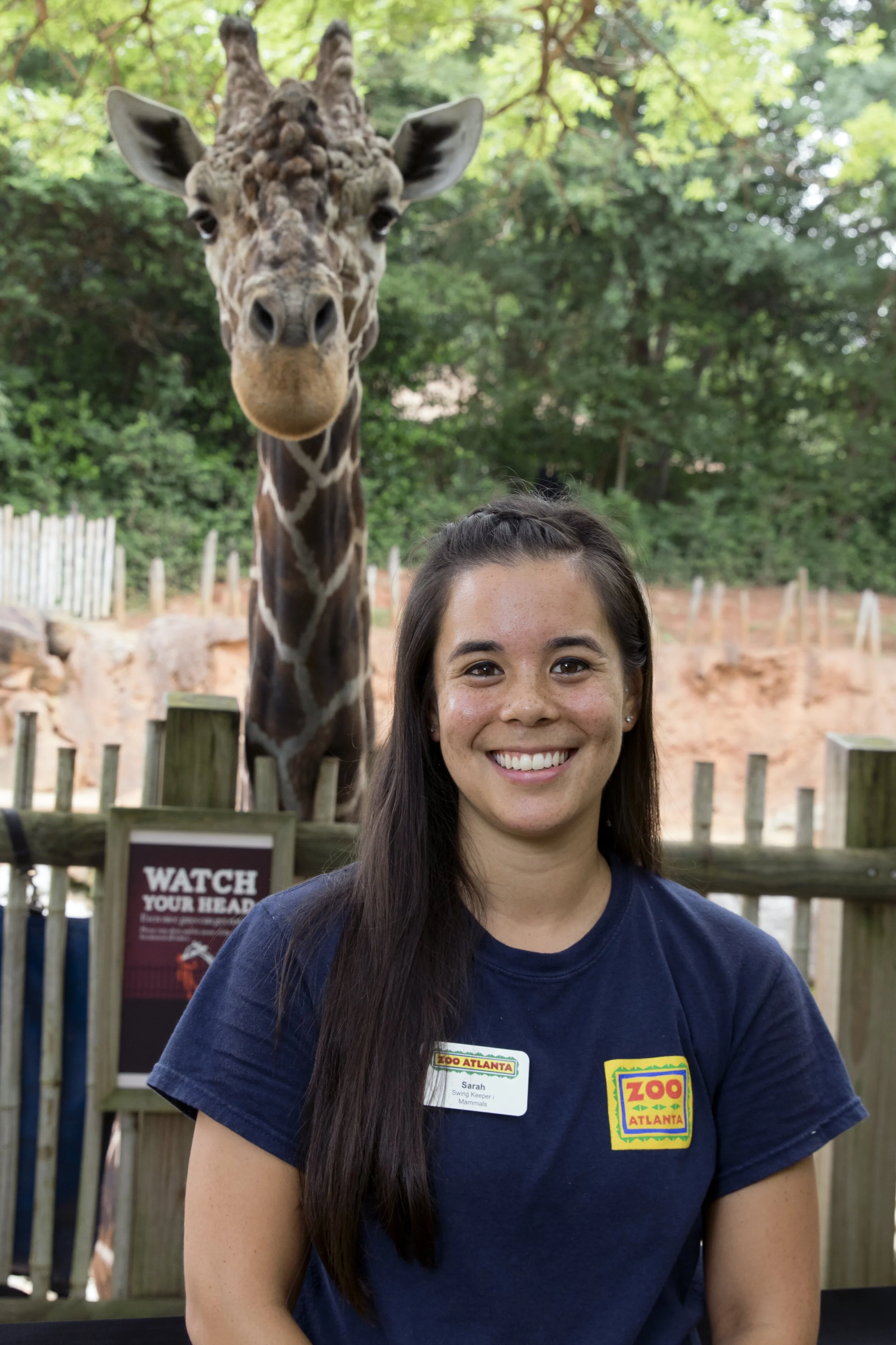 I am a zookeeper at Zoo Atlanta and have been here for over three years. My specific position is a Swing Keeper for the Mammal Department. This means that I am lucky enough to get to work with the Hoofstock, Carnivore, and Panda Teams. Our Hoofstock Team takes care of reticulated giraffes, plains zebras, ostriches, white rhino, and warthog. The Carnivore Team cares for giant river otters, sun bears, lions, tanuki, fossa, clouded leopard, Sumatran tigers, and binturong. The Panda Team cares for giant pandas and red pandas.