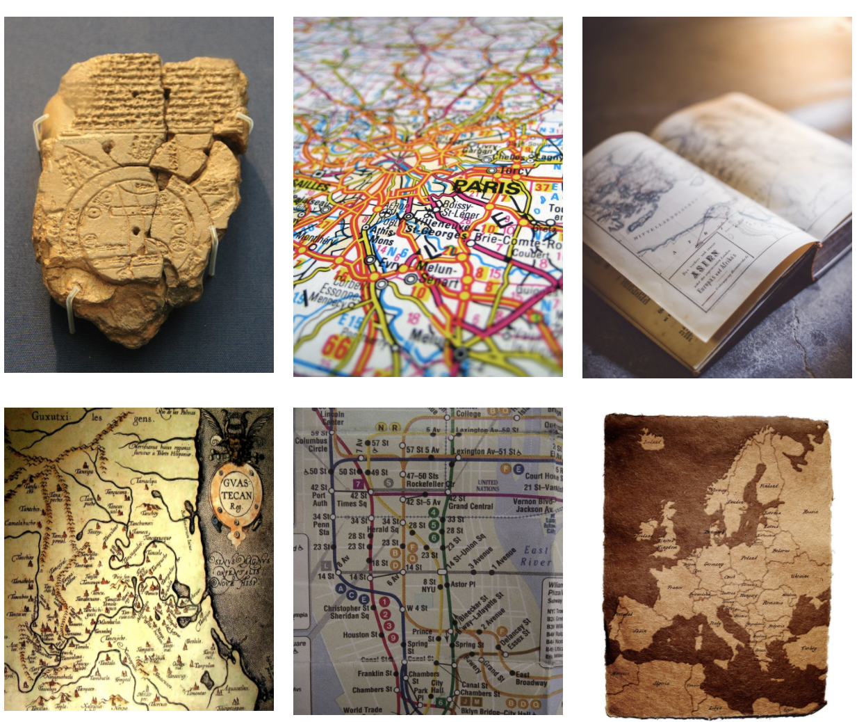 A collection of maps, both old and new. (Image credits clockwise from top left: Gary Todd, Jean Scheijen, Kiwihug, Benjamin Earwicker, Ariel Camilo, BSK)