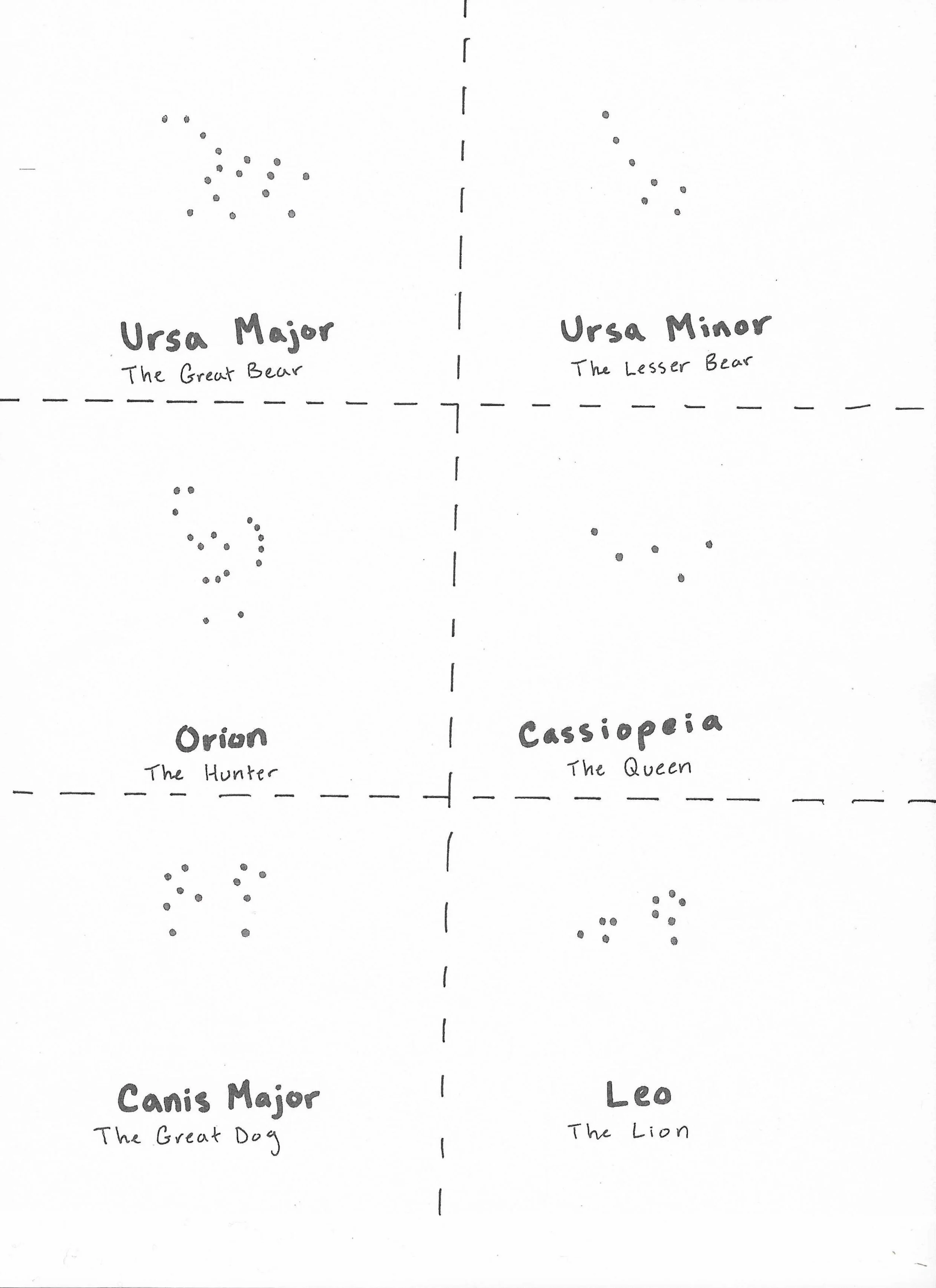 -Either a print-out of the constellations (click the big orange button below) or a pen and paper to draw your own