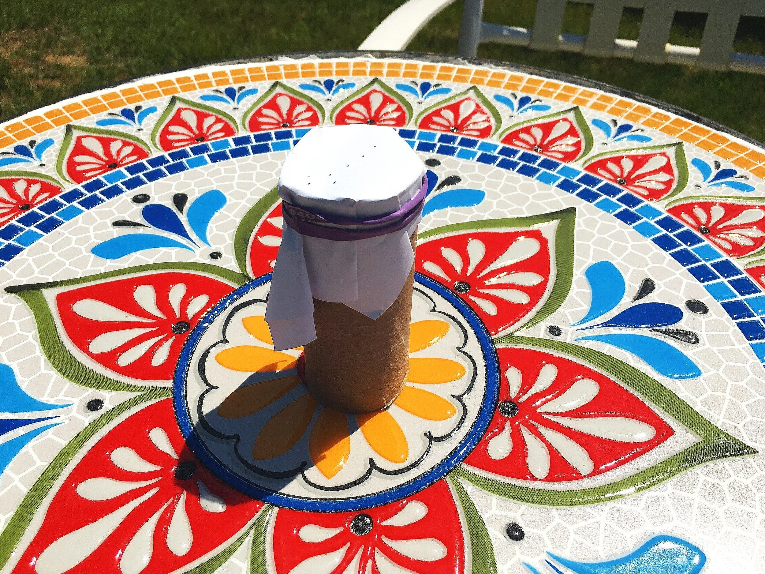 -A toilet paper tube (which we all know you have and haven't thrown out yet. If you’re a better person than me and actually throw out your toilet paper tubes- you can use a paper cup, pringles can, or any other tube-shaped object)