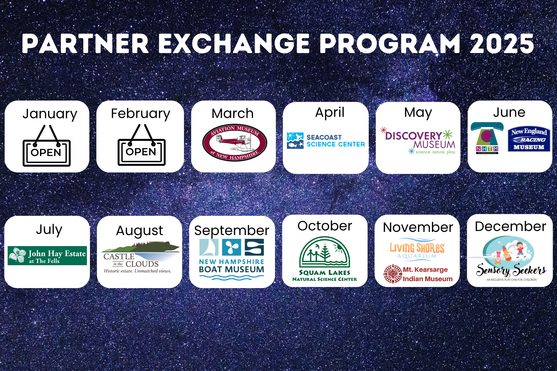 Our Partner Exchange Program is designed to foster collaboration, cultural exchange, and mutual learning between organizations and institutions across New England. Discovery Center members are encouraged to take advantage of free admission to our partnering organization each month.